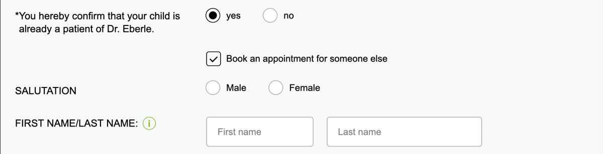 Create a personal account on Medicosearch for yourself, and then choose ☑︎ Book an appointment for someone else to register your child.